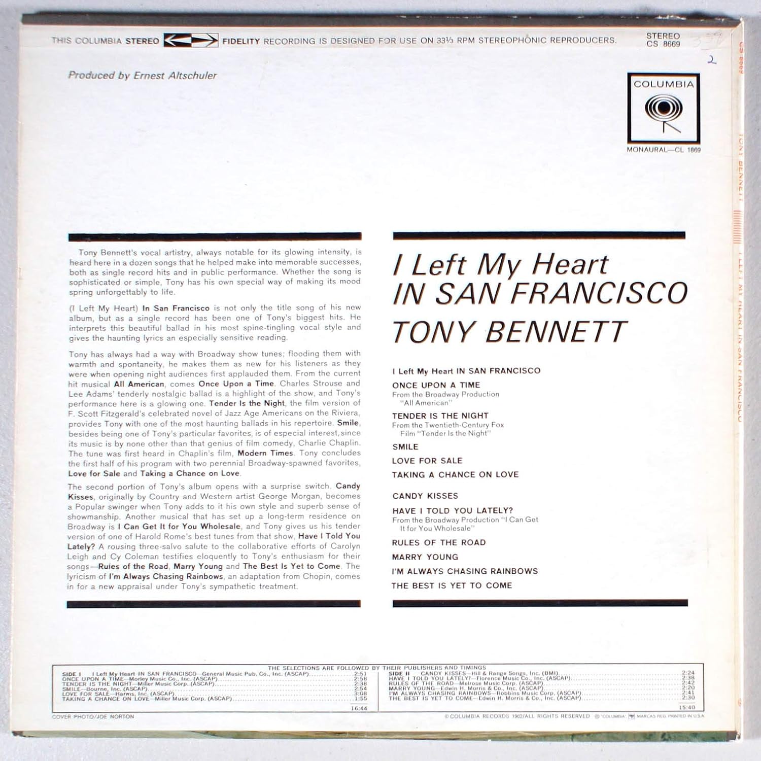 Tony Bennett Signed I Left My Heart In San Francisco Lp Celebrity Autograph Tony Bennett Tony Record Album from i.pinimg.com I left my heart in san francisco is an album by tony bennett, released in 1962 on columbia records. That san francisco sun tony bennett 2016. 127,178), входит в плейлисты «texas tornados: The title track, i left my heart in san francisco, sets the pace but it just gets better. Joe leslie from san francisco, caoh. I left my heart in san francisco (remastered). The tony bennett / bill evans album. This page includes tony bennett i left my heart in san francisco's :